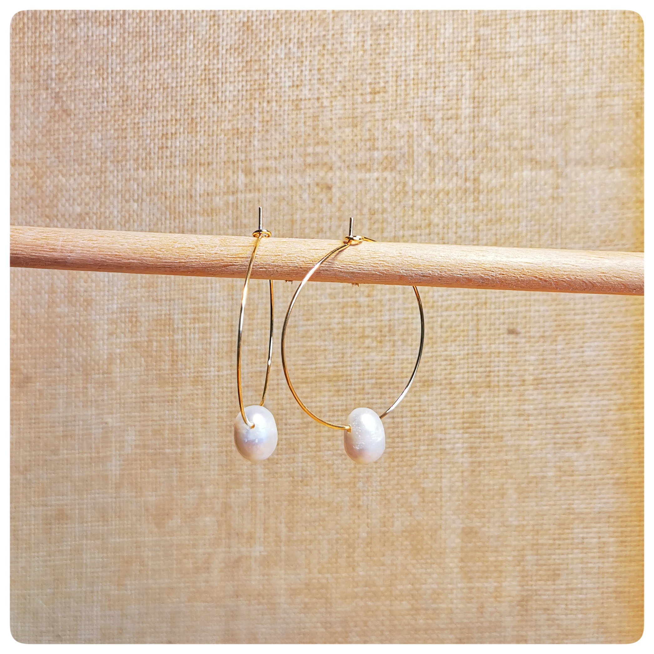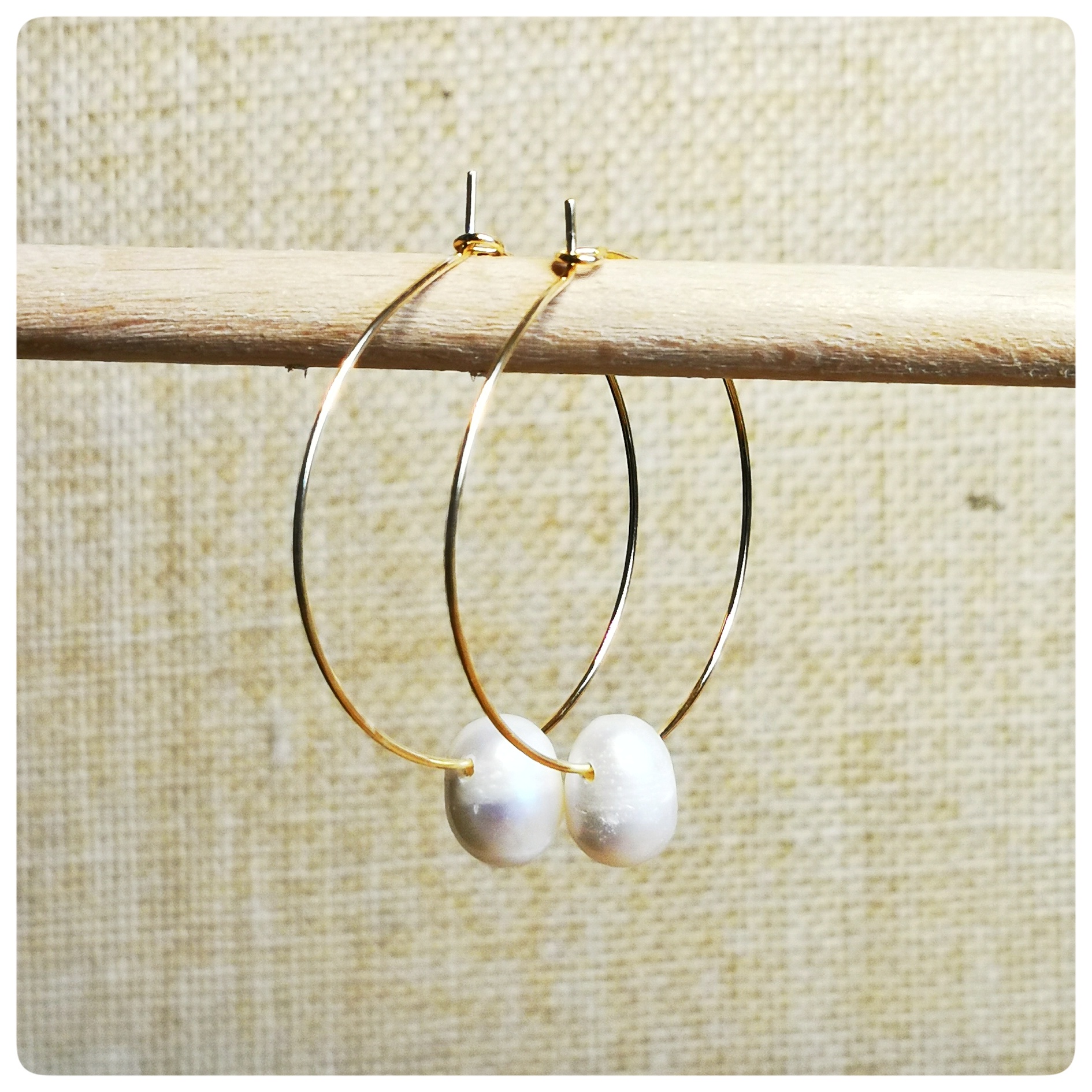Une créole fine en acier inoxydable, une perle d’eau douce… et c’est tout.