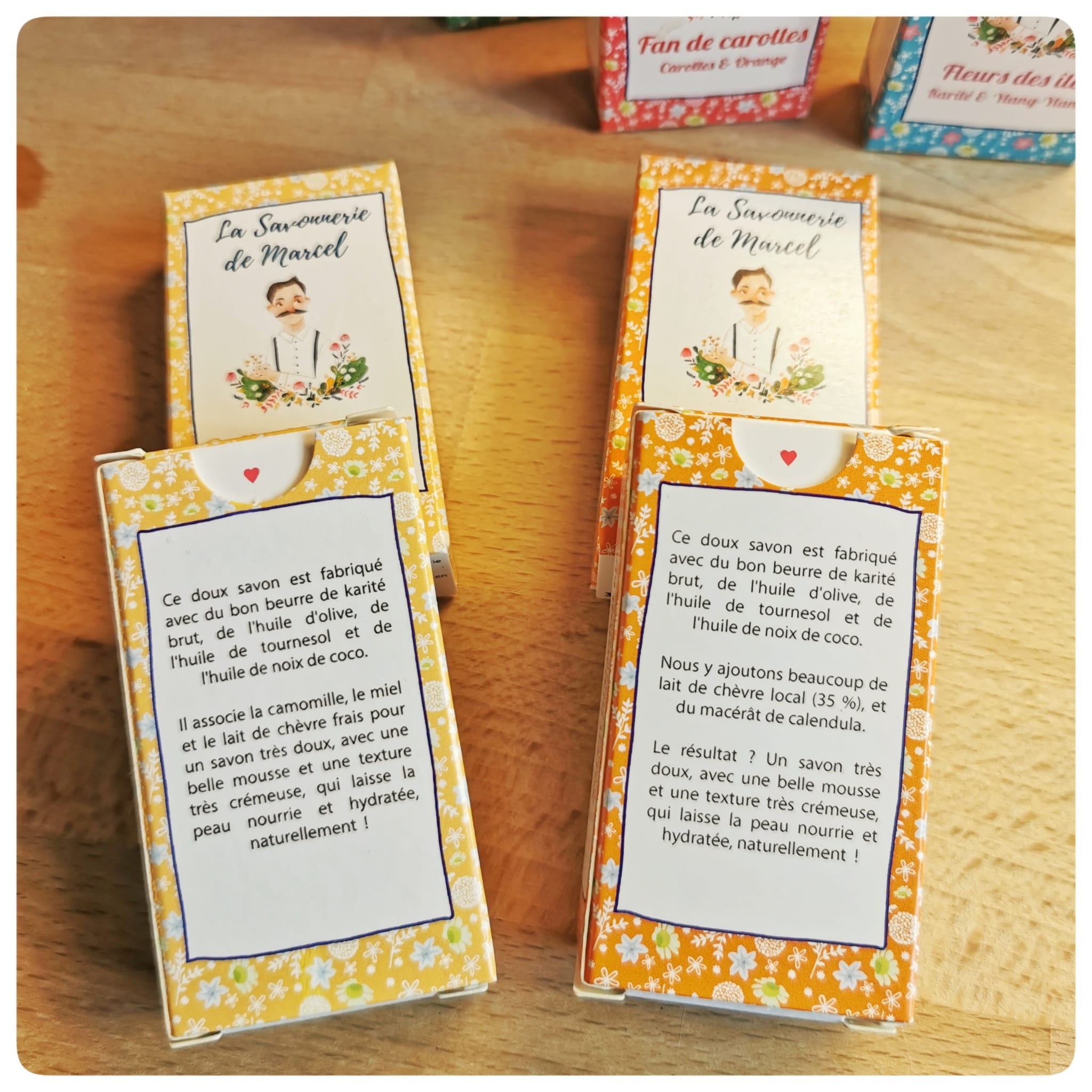 Fabriqués par Maryline et Manuel, de la savonnerie « Les Savons de Marcel », ces savons sont réalisés selon la méthode de saponification à froid.